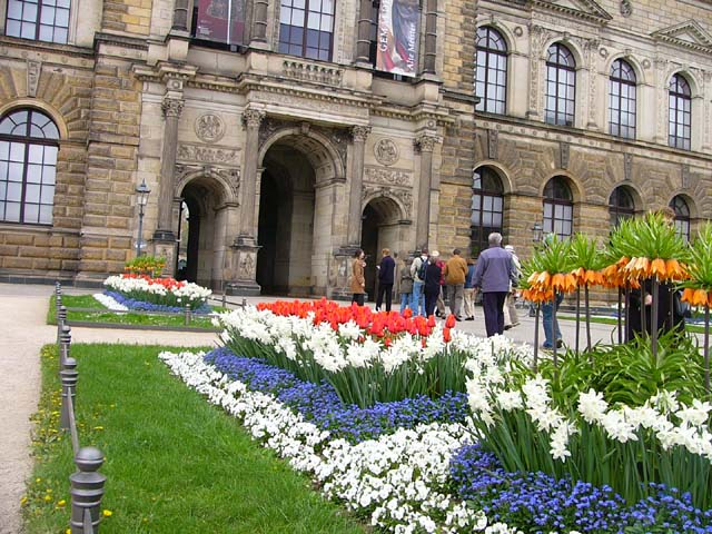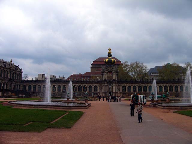 広場テアータープラッツの南西側にはツヴィンガー宮殿があります。