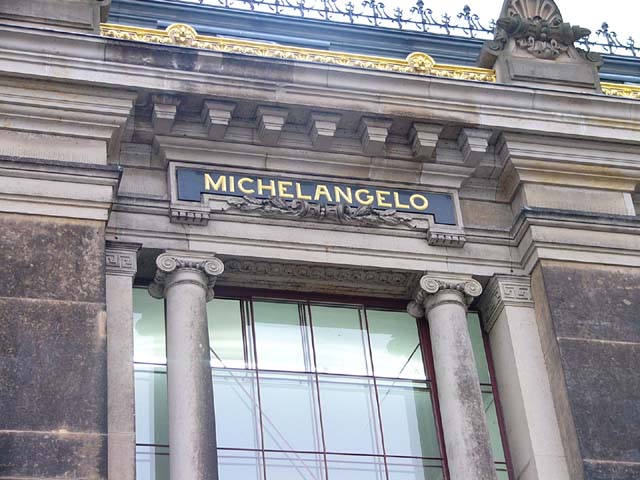 この建物はプリュールシェ・テラッセにある旧王室アカデミーでその切妻にはミケランジェロやレオナルドの名が掲げられています。