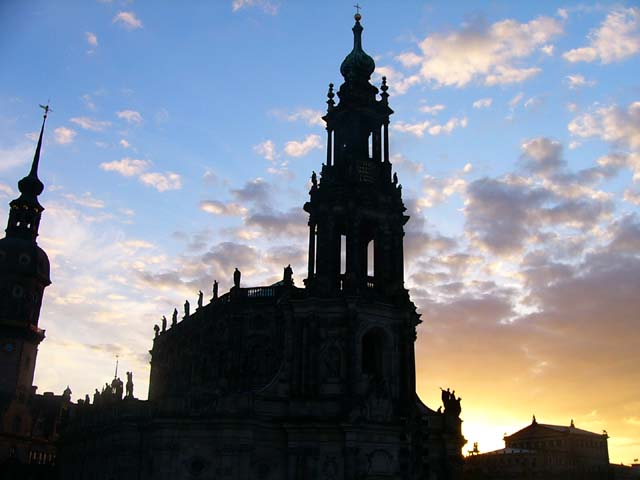 夕闇迫る頃、といってもこの時期夏時間のため、午後7時頃漸く陽が西に傾き、ドレスデンの町が夕日に照らされ始め、見事な