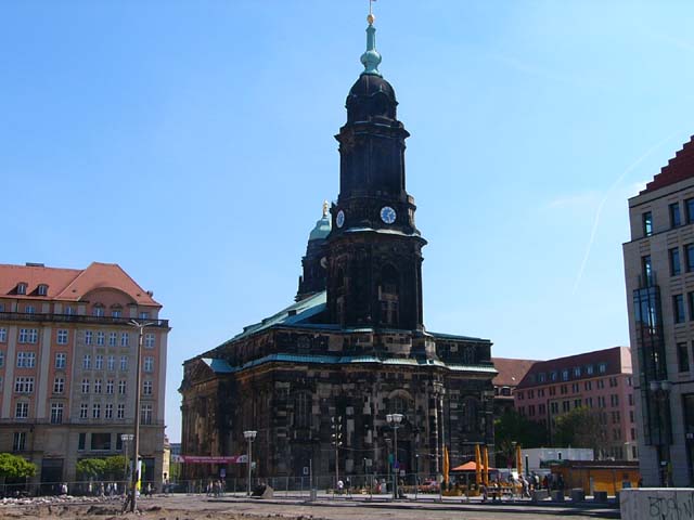 近くにもう一つの教会があります。その名は、クロイツキルヒェ、つまり十字架教会です。フラウエンキルヒェの南側のアルトマ