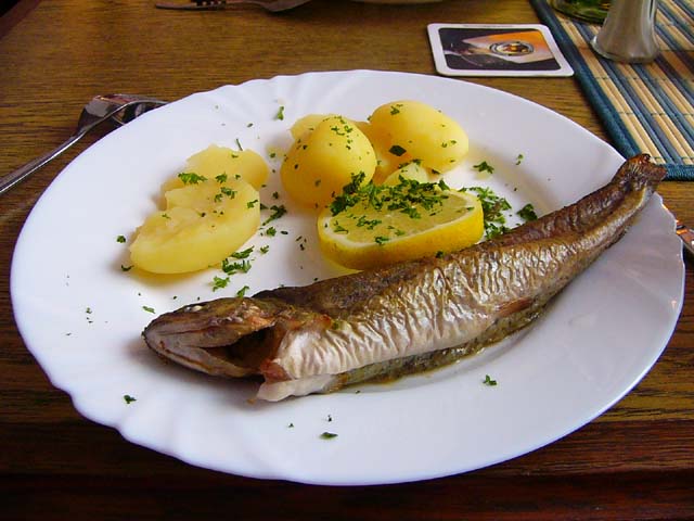 そして、メーンディッシュはなんとジャガイモと鱒の姿焼きです。こんな取り合わせ日本