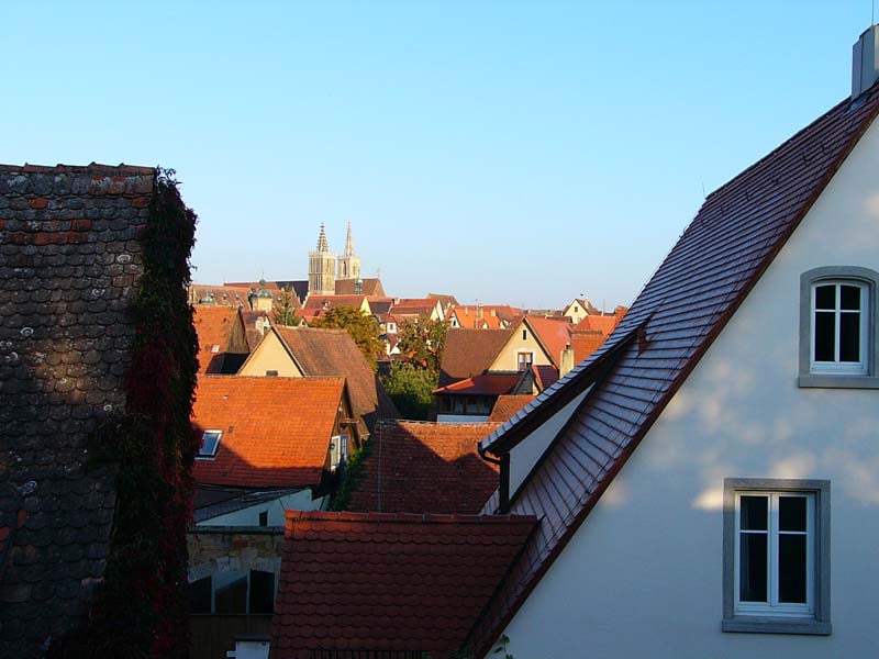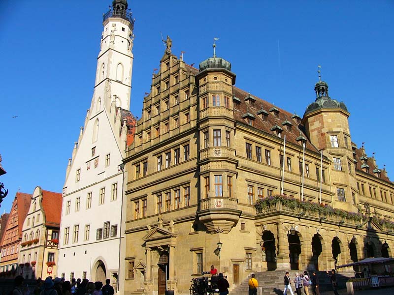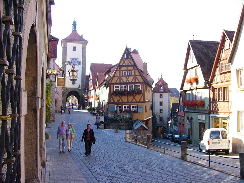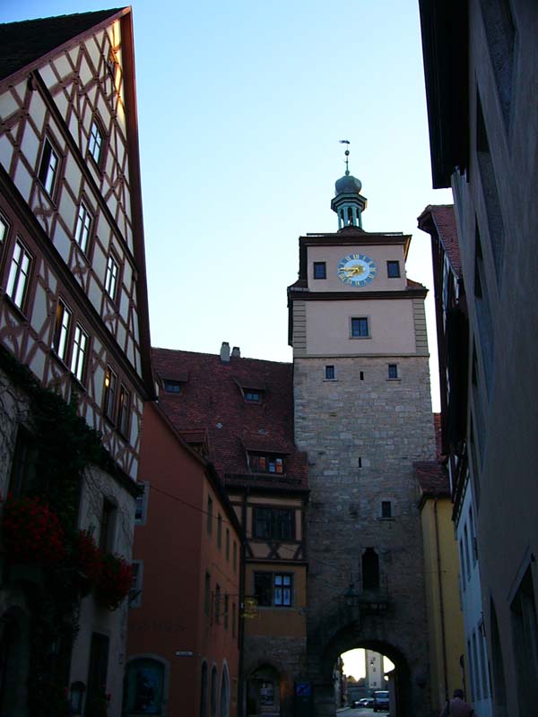 ここは、ローテンブルグ紹介のポスターには必ず登場するプレーンライン(分かれ道)からジーバース塔(左の塔)