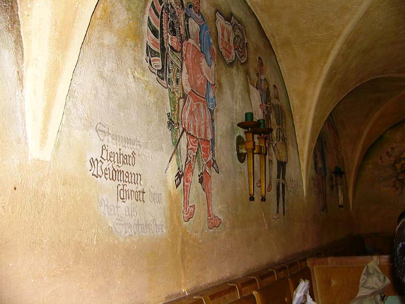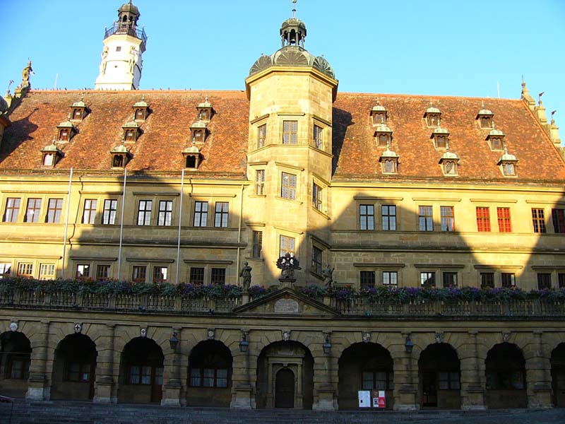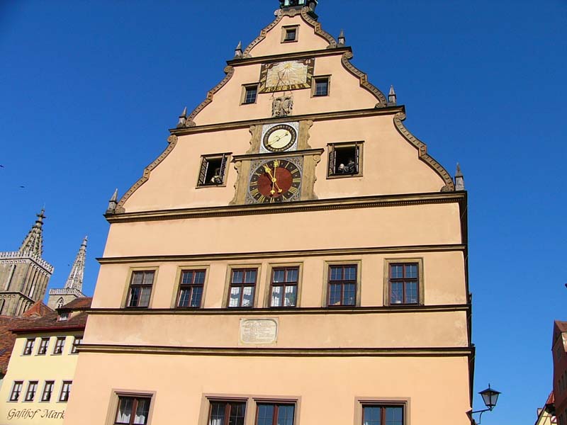 こちらは、マルクト広場にある市参事会員の宴会館ということで、中央には1683年製といわれる時計があります。この