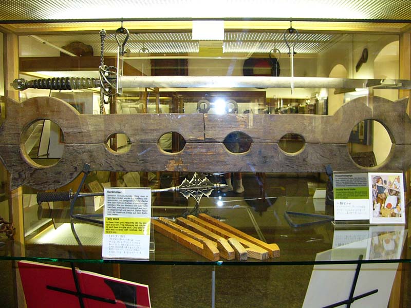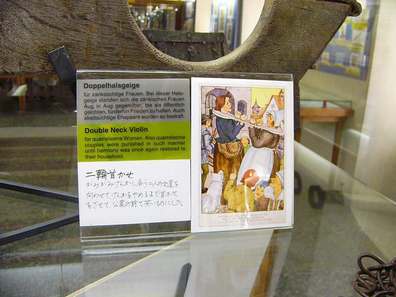 実は、二人用の首かせ、 説明には「がみがみいがみ合う二人の女達を向かい合わせて首かせをさせて、けんかを止め