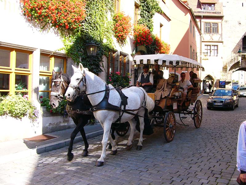 今回は駆け足のローテンブルグ滞在でしたが、ゆっくり時間があれば、このように観光馬車に乗るのもよし、もっとゆっ