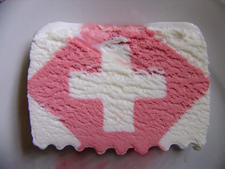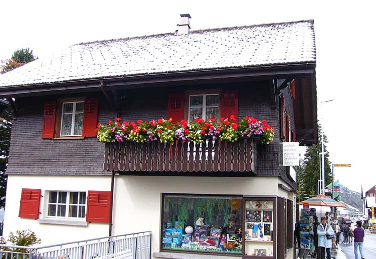 面白いのは雨戸が赤で窓枠が白、スイスの国旗を模しています。