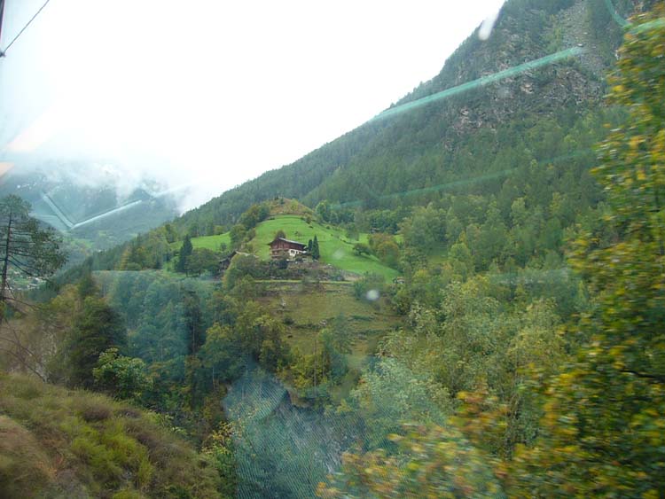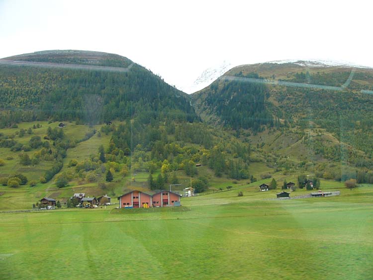 氷河の後のU字谷を走りますので、牧場や、山の斜面の村々を見ることができます。
