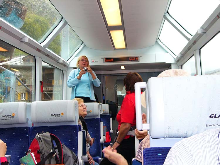 さー、我々が乗るツェルマット行きGlacier Expressが来ました。
