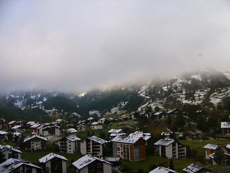ツェルマットの町もうっすらと雪景色ですが、上は好天のはず