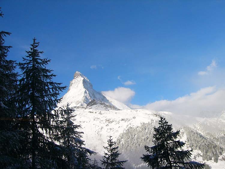 やったー!!です。くっきりとマッターホルンのあの特徴的な頂が拝めるではありませんか。