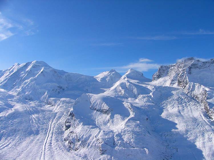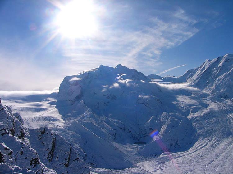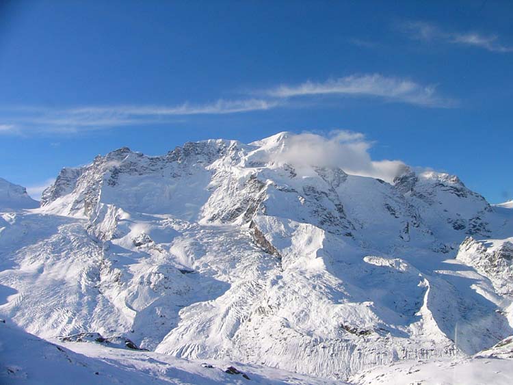 モンテローザとブライトホルンの間にあるリスカム、 4527mとこれも高い山です。
