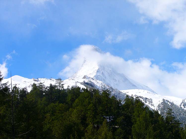 ここからは、マッターホルンの東壁が正面に見えるので、ツェルマットからの眺めとはかなり違います。