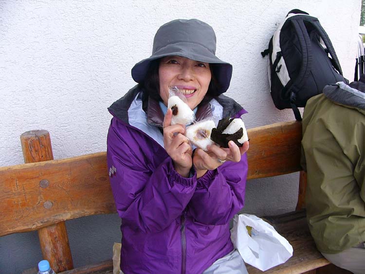 途中の乗り継ぎ駅、フーリで昼食、久しぶりのおにぎり