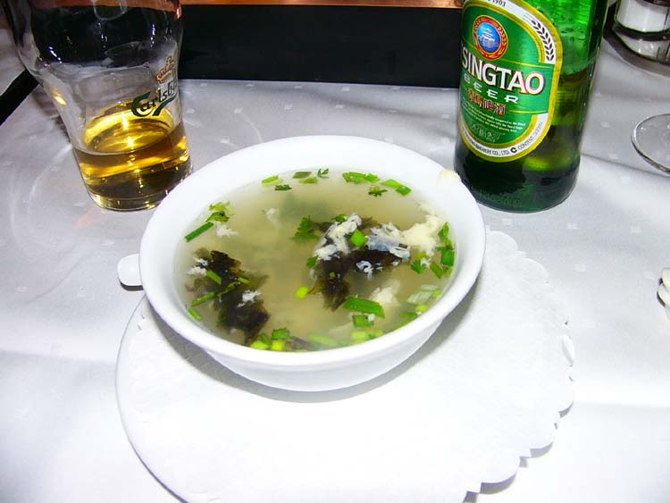今宵のディナーはどこにしようかなと考えた挙句、中華にしました。チンタオビールに海藻スープ。日本人にはチ