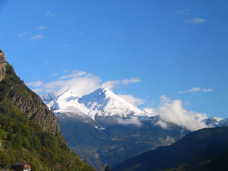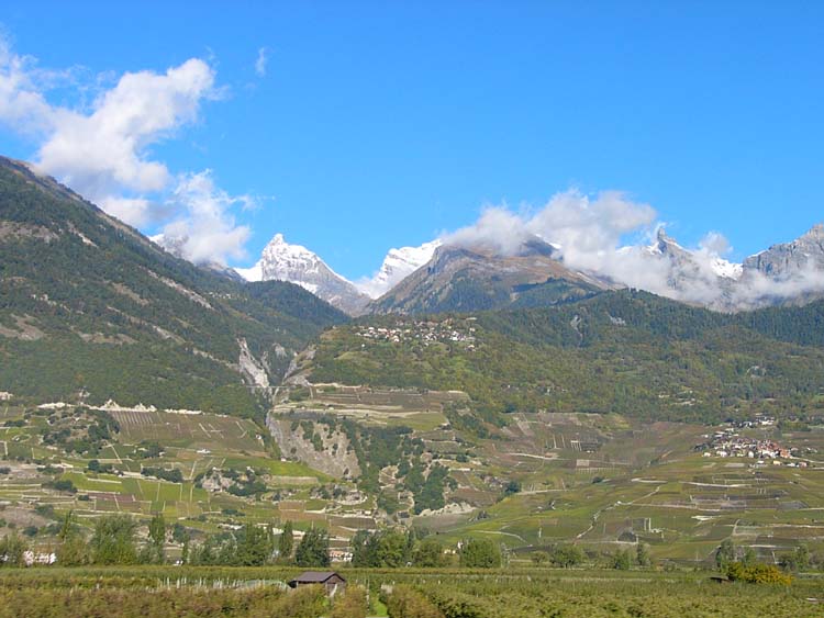 ローヌの谷の北側に聳えるベルナー・アルプスの山々が連なっています。