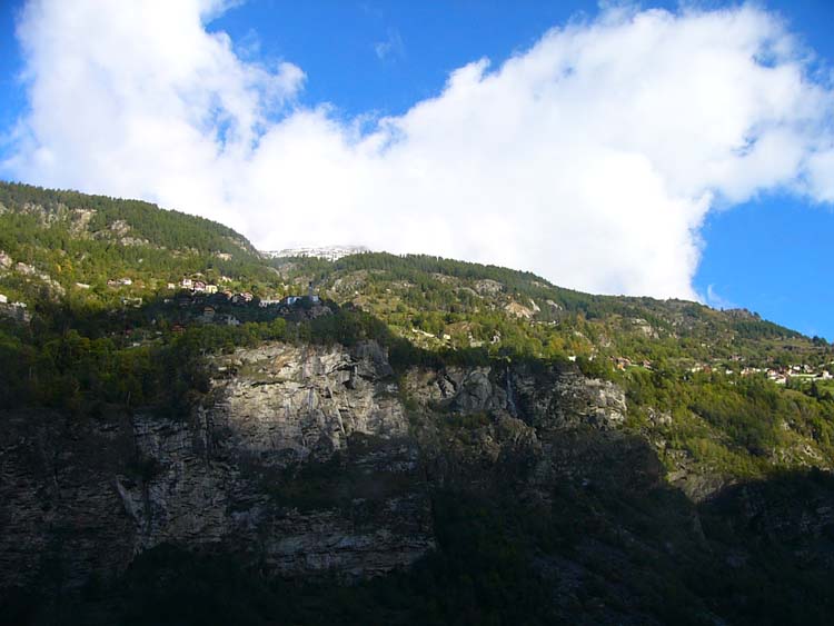 バスはマッター谷を進み、やがてローヌの谷に出ます。 マッター谷ではこのように断崖の上に沢山の村