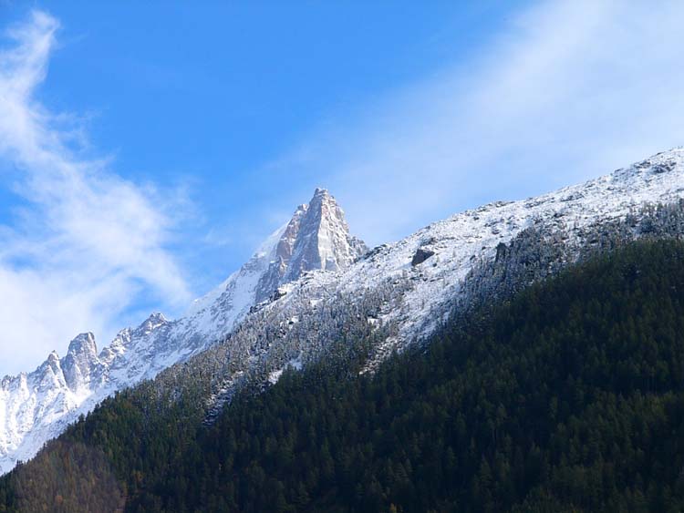 グランドジョラスが見えてきました。ツェルマットやグリンデルワルトの山々とはまた違った趣です。