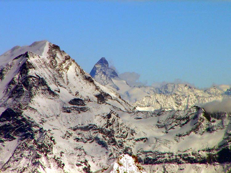 やっぱりそうです。グランドジョラスの左にモンテローザ、そしてマッターホルンを確認できます。