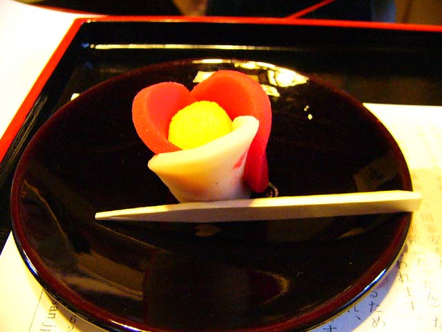 デザートはこれぞ奈良の春、二月堂の修二会にちなんだ「糊こぼし椿」を模した和菓子です。