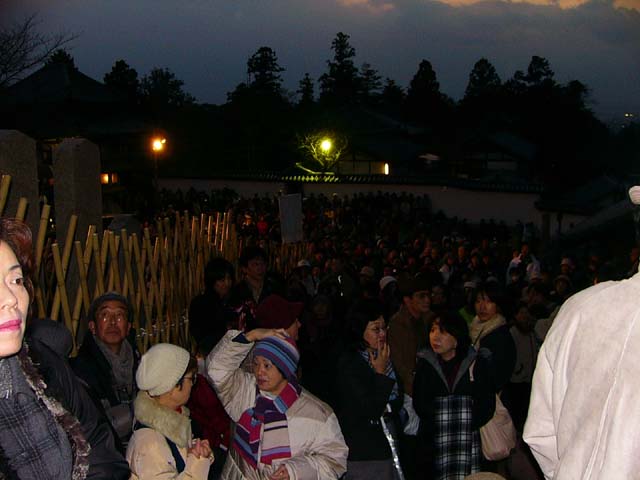 二月堂の舞台に上がると、まだ開始1時間前というのに、境内にはこんなに大勢の人が・・・