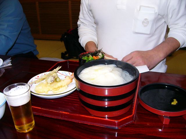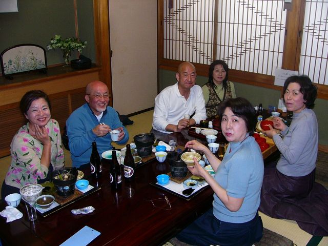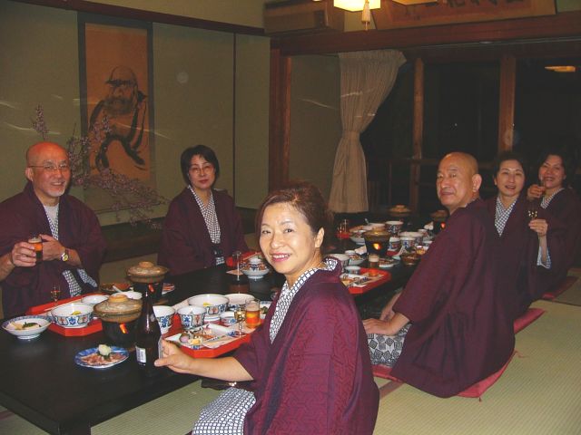 一風呂浴びて、100畳近い大広間で我々だけの宴会。