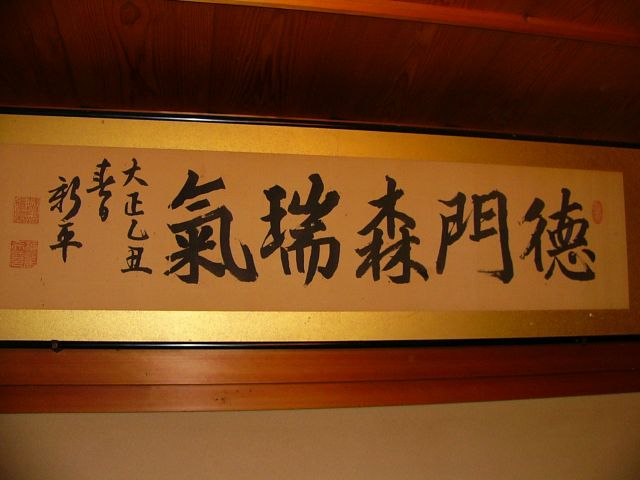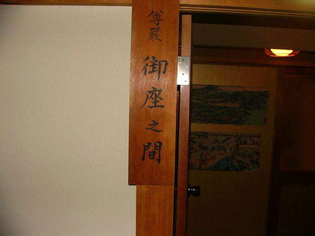 この部屋が御座の間となった部屋。 われわれもこの部屋に泊まりました。 額は東郷平八郎の書、