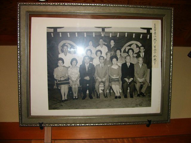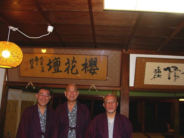男共は後藤新平書の櫻花壇の額の下で記念撮影。