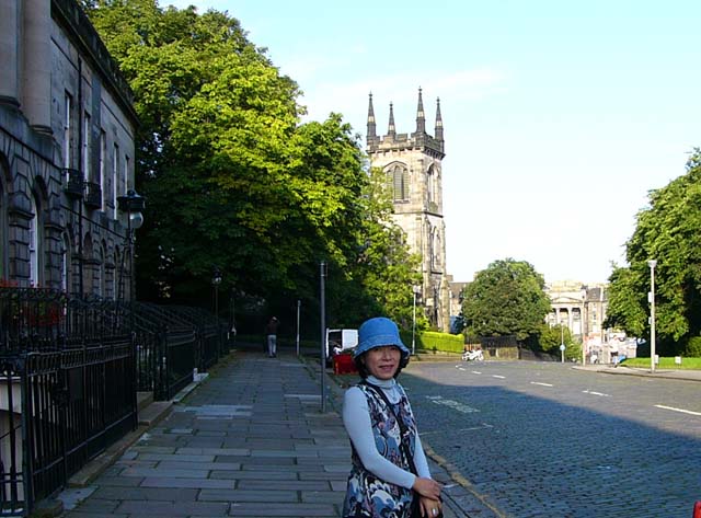 まずはホテルの前で・・・ここは、エディンバラ旧市街の北東に位置するロイヤルテラスです。向こうに見える塔