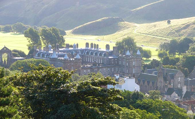 そして、ロイヤル・マイルの終点には、先ほどカールトン・ヒルから見たホーリルード宮殿があります。