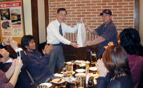 これから宴会という時点で、急な仕事の電話が入って宴会参加を断念して帰っていったことが