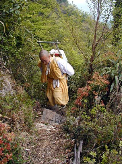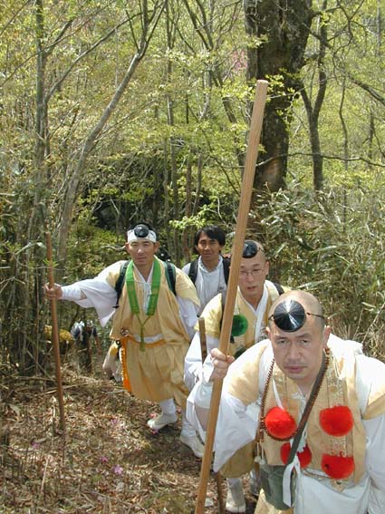 奥駈で高木亮英師のすぐ後ろを歩く古賀野さんは飛鳥の橘寺の僧侶です。彼はお寺とは全