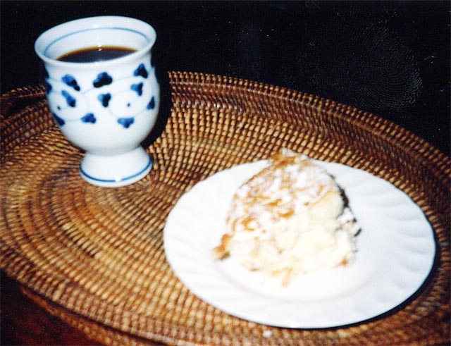 林檎のケーキ、パンナコッタ、コーヒー