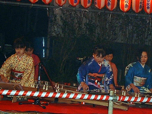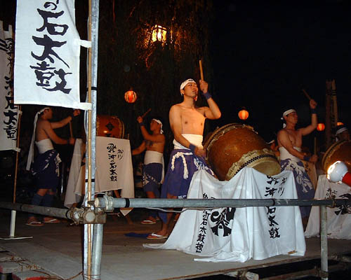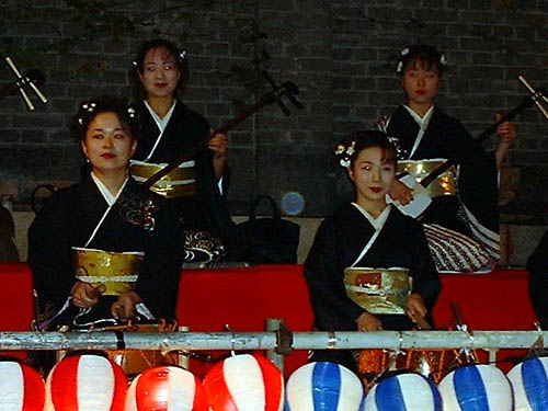 るくてらしています。あちこちに設けられた舞台のうえでは太鼓、尺八、琴、三味線