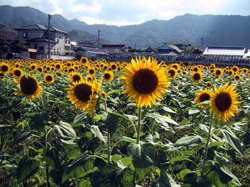 町営のお風呂でさっぱり汗をながした帰り道、向日葵が綺麗でした。