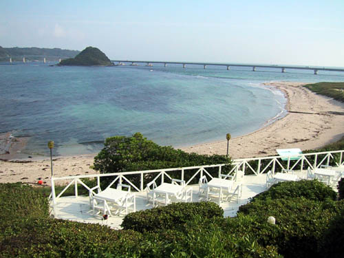 地,ホテル西長門リゾートに直行。日本海のエメラルドグリーンの海、白い砂浜。夏