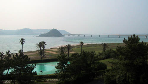 だね。子供達は早海水浴。向かい側の角島は魚業が盛んな島なので,本格的にお魚が