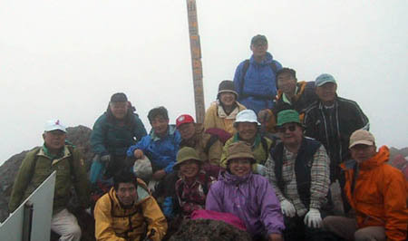 とうとう全員山頂にたどりつきました。爽快大満足。おにぎりもビールも美味しいよー。