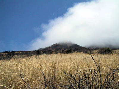 その内つずら折れの原生林のなかを上ることしばし、生憎の天候で眺望は望めないも