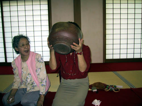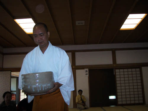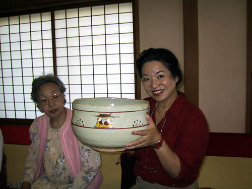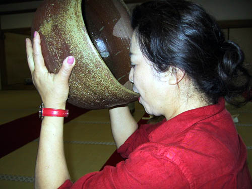 の人が御茶碗を支えてのまれました。