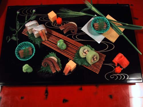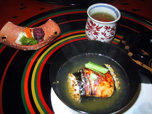 ごはんをおむすびにしてまわりに鯛の身を巻きつけてこんがりあぶったものに