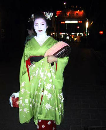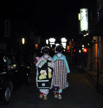 嬌声がして舞妓さんたちが仰山でてきはりました。