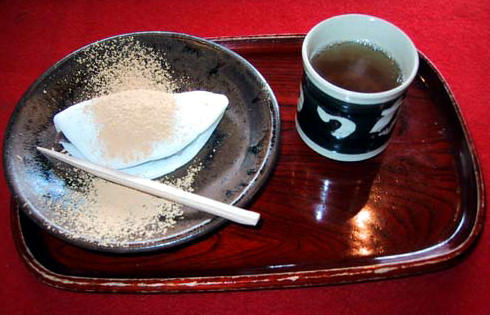 柏餅の葉っぱがついてなくて黄な粉をまぶしたようなものと思っていただけばよろしいでしょう。