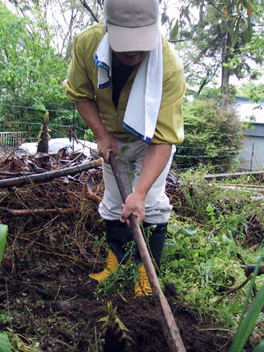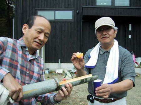 皆の絶賛に気をよくした章ちゃん 竹林から竹をきりだして