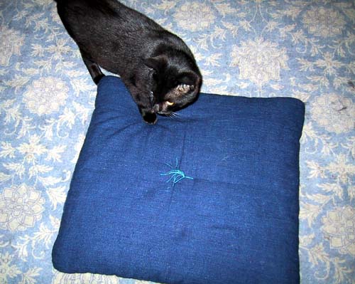 藍染座布団 早速アトムに狙われた |