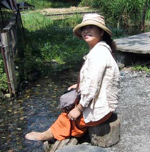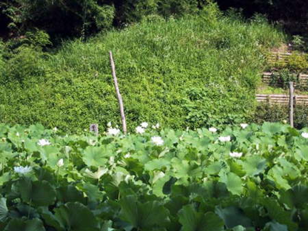 登って行くと、朝のひかりのなかで、目覚めたばかりの蓮の花