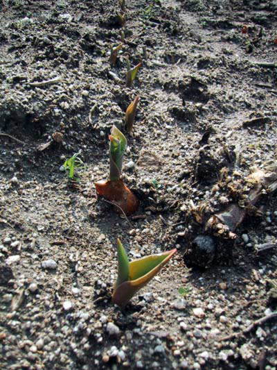 チュウリップのも芽をだして