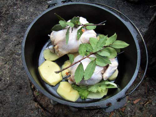 ダッチオーブンを暖めオイルを入れ