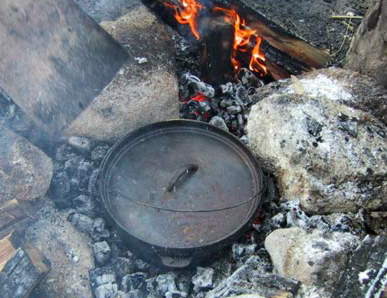 あらかじめ焚き火をして熾きをつくっておく