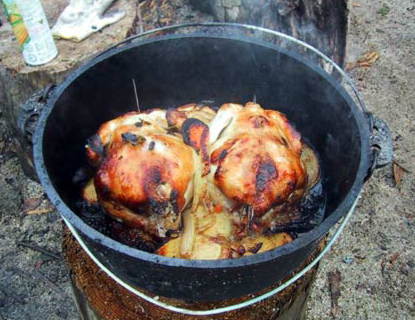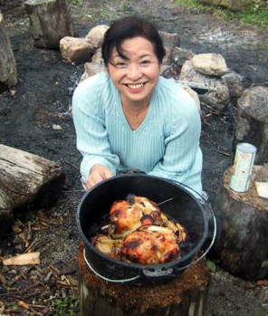 下火30分して蓋の上に熾きを置いて15分