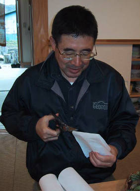 食後のひととき障子の修繕に精を出す太一ちゃん
